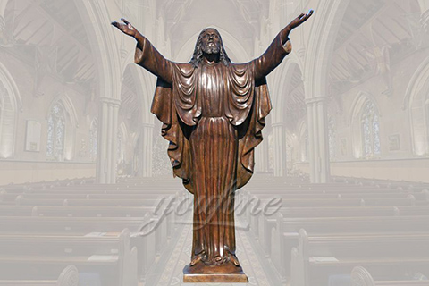 Bronze Standing Jesus Sculpture Christian Statue with Hands Opening for Sale