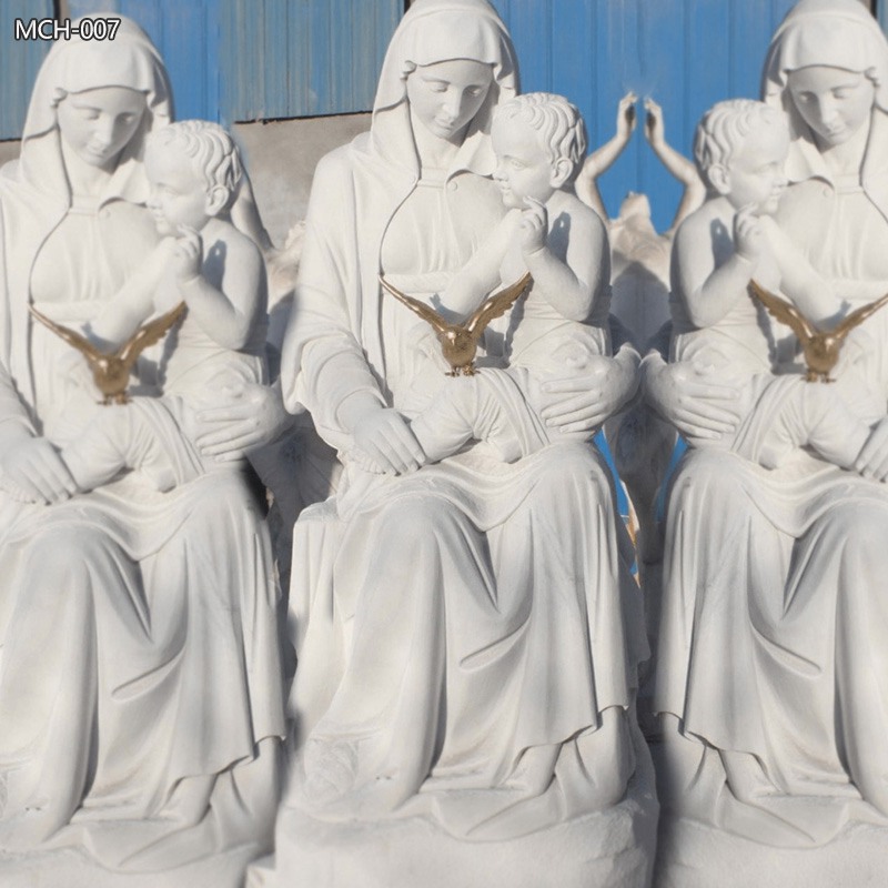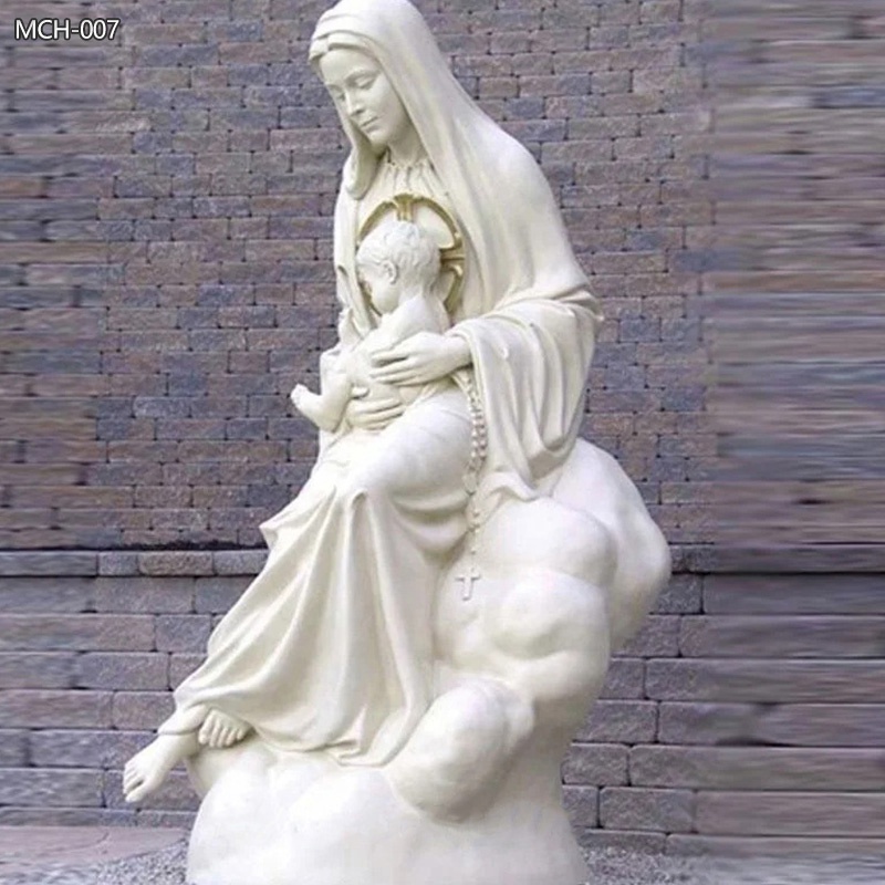 The mother Mary marble statue depicts the Virgin Mary holding the infant Jesus Christ in her arms.