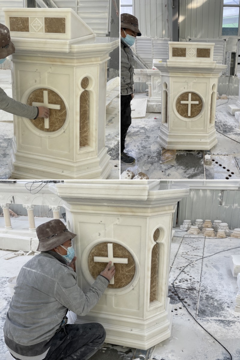 Dora, the director of YouFine, has strict requirements for the selection of materials for the catholic marble altar, and will personally come to the material yard from time to time to select high-quality marble raw materials. Therefore, all YouFine church sculptures are carved from pure natural grade A marble, which has moderate hardness and can carve exquisite lines and restore sacred classic sculptures.