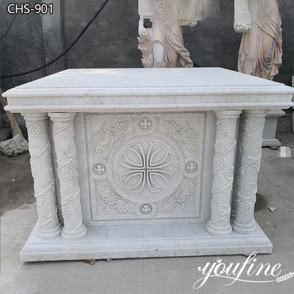This white marble altar was made by YouFine factory. YouFine factory has various types of marble altars. And we also offer a variety of customized services.