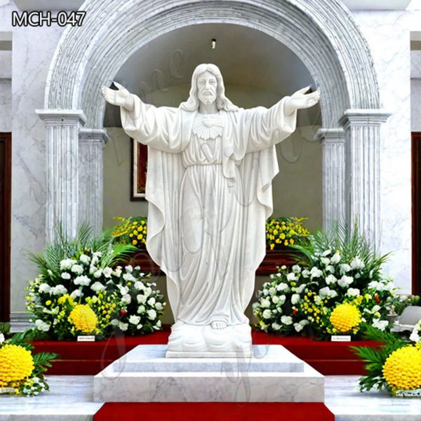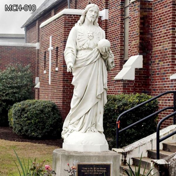 Holy White Marble Sacred Heart of Jesus Statue for Sale