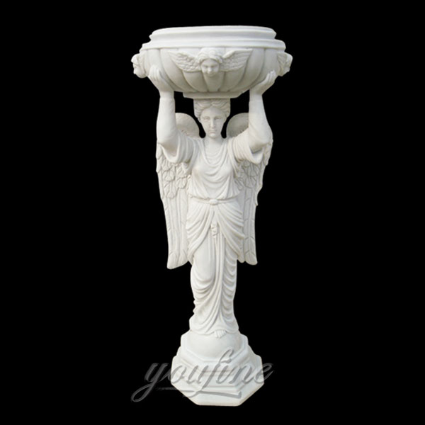 Hand Carved Beautiful Angel White Marble Baptism Font for Church