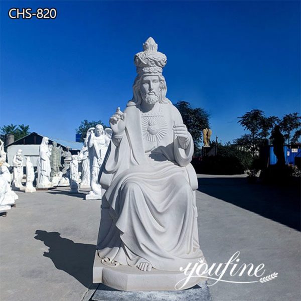 This marble life-size Jesus christ statue would be carved out of high-quality natural white marble materials. Our Jesus statue shows us the most authentic image of Jesus. He has a crown made of thorns on his head, he wears a magnificent robe, and his chest bears the symbol of the Sacred Heart. He sat there quietly, with fixed movements in his hands, as if he was preaching to people.