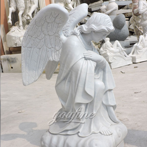 Customized life size marble kneeling angel statues in pairs made for Canada client